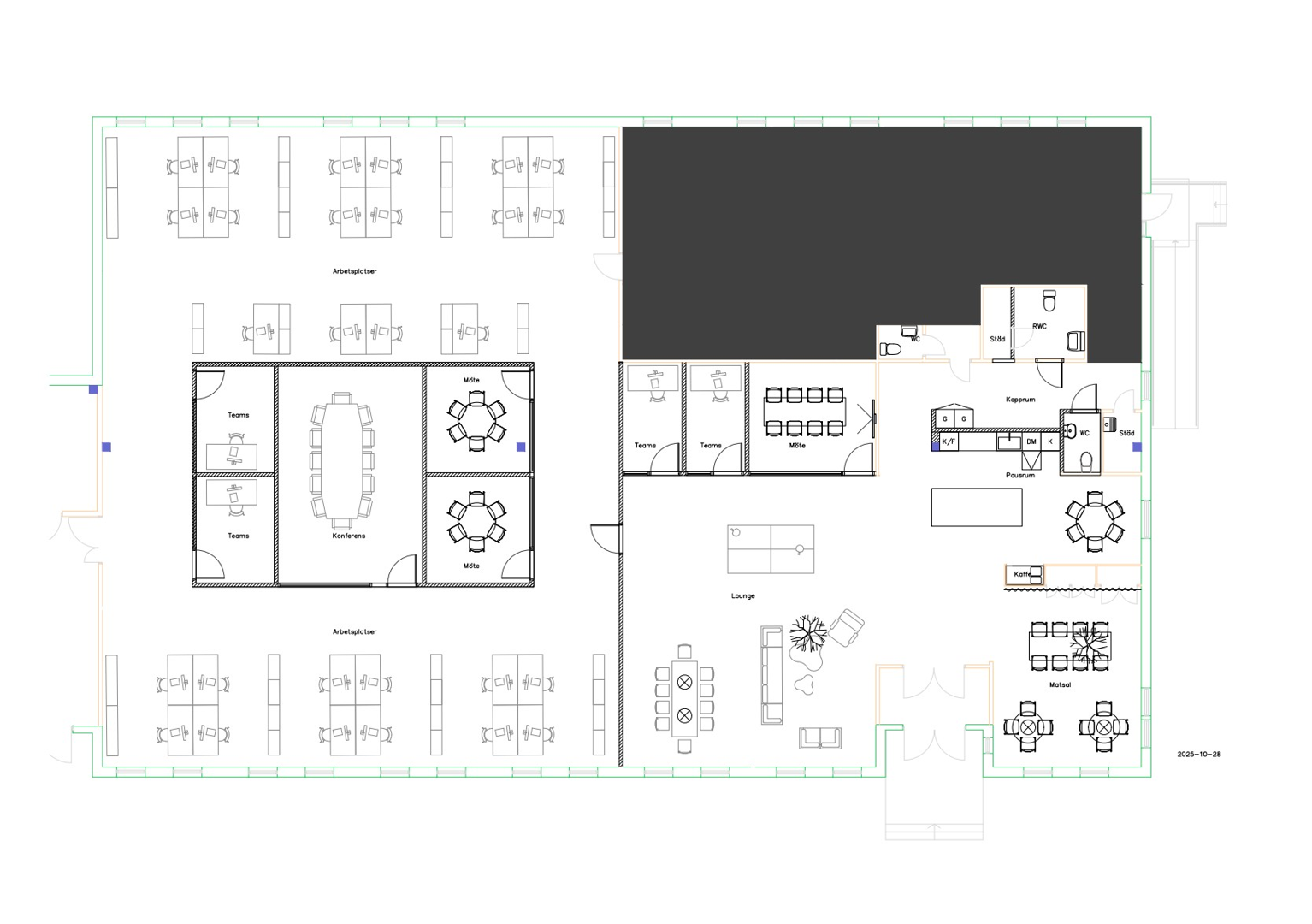 Se bifogad exempelritning på hur lokalen kan bli.