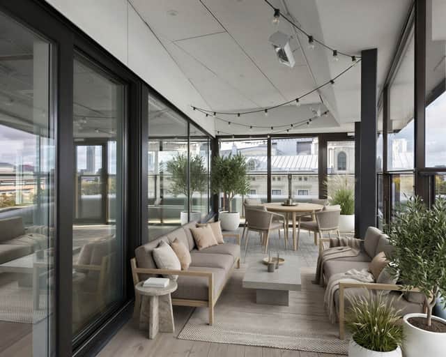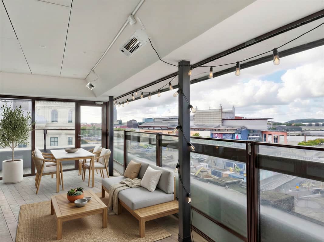 Modernt kontor med en arbetsmiljö i två plan, härlig utsikt och terrass!