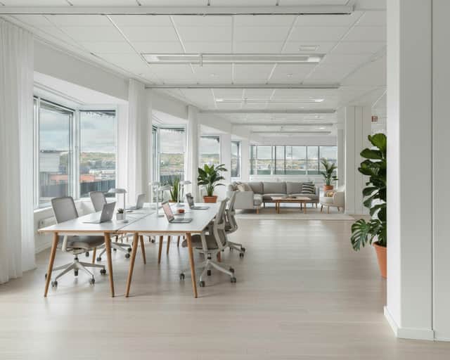 Med de stora fönstren till lokalen får du inte bara massor av naturligt ljus, utan också en fantastisk utsikt över Göteborgs skyline. Att arbeta i denna miljön kommer definitivt att ge dig inspiration och motivation i vardagen.