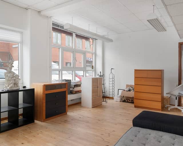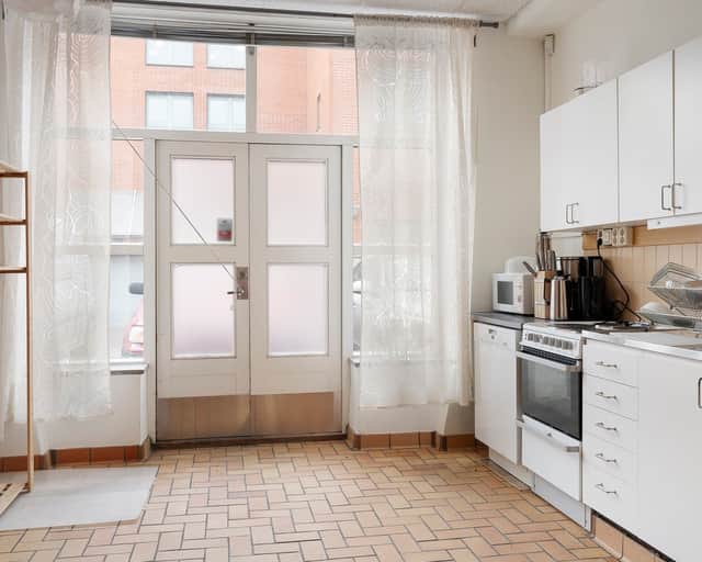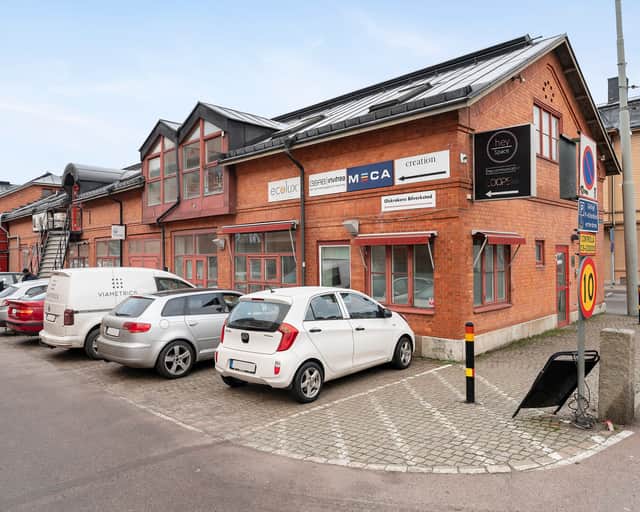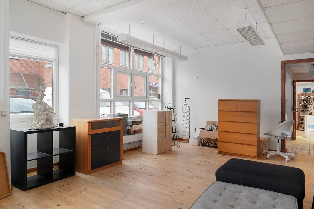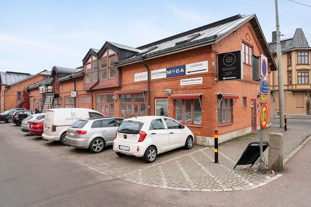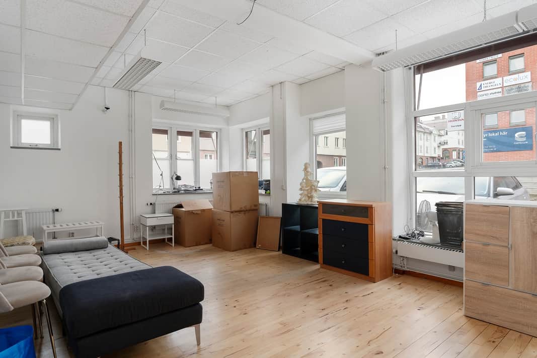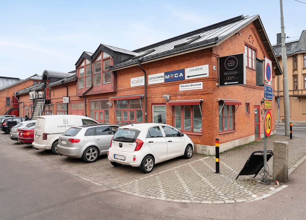 Lokalen är belägen i en karaktärsfull tegelbyggnad och erbjuder både en separat kontorsentré och en praktisk inlastning med dubbeldörr direkt till lagerdelen – perfekt för dig som vill kunna köra fram bilen för enkel av- och pålastning.