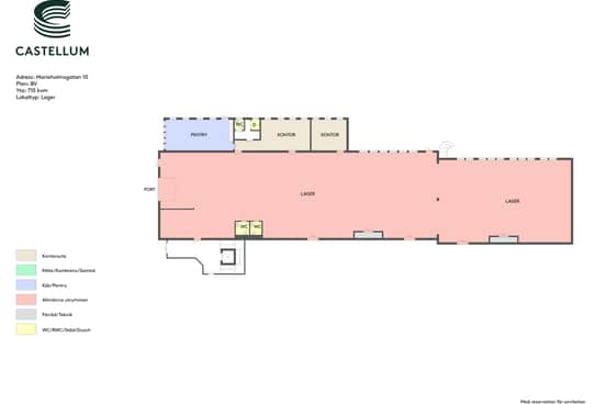 Öppen lageryta med möjlighet till avdelning. Två dubbeldörrar in i lokalen. Normal takhöjd.