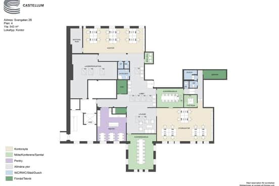 Lokalen har en blandad planlösning med både öppna ytor och enskilda rum. Den generösa takhöjden i kombination med lokalens unika utformning ger en luftig och flexibel känsla. Eftersom lokalen är i behov av renovering finns möjlighet att påverka layouten för att skapa en skräddarsydd lösning.