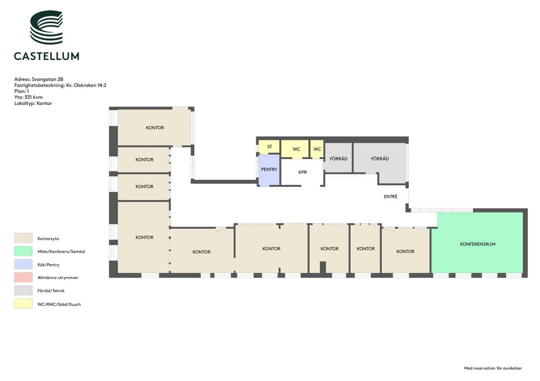 Lokalen har en blandad planlösning med både öppna ytor och enskilda rum. Den generösa takhöjden i kombination med lokalens unika utformning ger en luftig och flexibel känsla. Eftersom lokalen är i behov av renovering finns möjlighet att påverka layouten för att skapa en skräddarsydd lösning.