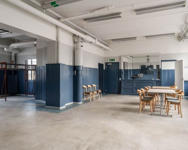 Som extra mervärde finns omklädningsrum och bastu, vilket ger både komfort och en unik detalj för personal eller gäster.