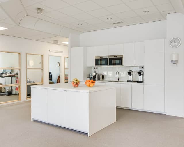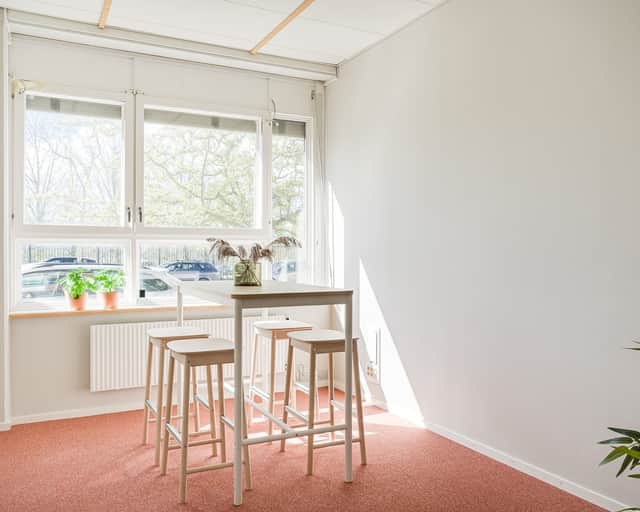 Skräddarsydd ett kontor för att möta era unika önskemål och behov. Genomtänkt rumsindelning ger er flexibilitet att anpassa lokalens layout efter ert företags specifika krav. Den noggrant planerade designen inkluderar stora fönster och öppna ytor för att maximera naturligt ljusinsläpp. Det skapar en ljus och energifylld arbetsmiljö som främjar välbefinnande och produktivitet. Den generösa takhöjden inte bara förbättrar arbetsmiljön utan ger även möjlighet för kreativa och flexibla lösningar.