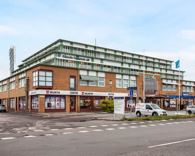 Modern kontorsfastighet i 4 vån med butiker i bv i bästa läge på Ringön. Fastigheten ligger utanför trängselavgifter.