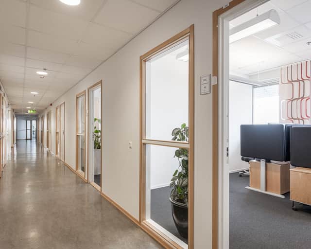 Här erbjuds en flexibel kontorslokal som kombinerar funktion och karaktär. Lokalen rymmer flera kontorsrum som ger arbetsro och fokus, samt separat konferensrum perfekt för kundmöten, presentationer och workshops.