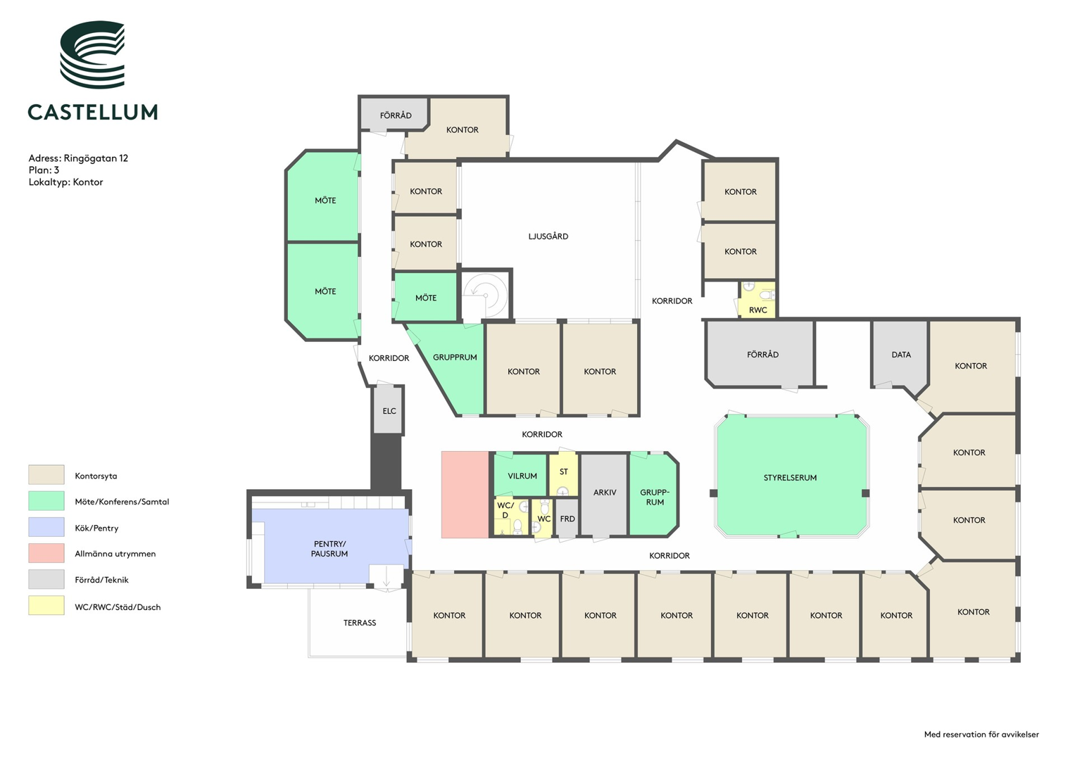 I dagsläget många kontorsrum, större konferensrum, pentry med utgång till egen terrass!