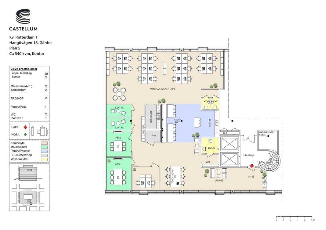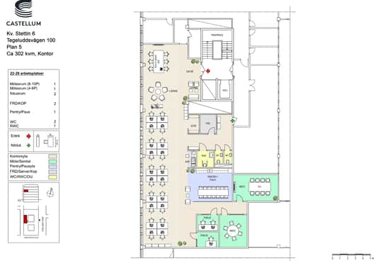 Välkommen till Stockholms hamnkvarter och ert nya kontor med närhet till grönska och vatten. Lokalen är idag i stomrent skick och kommer att anpassas efter era behov med nytt pentry, nya WC och nya ytskikt. Eftersom allt byggs från grunden har ni möjlighet att vara med och påverka lokalens utformning, med undantag för pentry och WC som har fasta lägen. Planritningen som presenteras är ett förslag på hur lokalen kan disponeras.