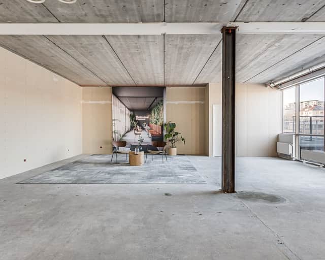 Byggnaden genomsyras av en industriell, urban och kaxig stil, där den nya fasaden i plåt speglar varvsarvet och historien kring Värtahamnen. Den känslan tas med när er lokal skapas, och ni har självklart möjlighet att välja material och detaljer som passar just er verksamhet.