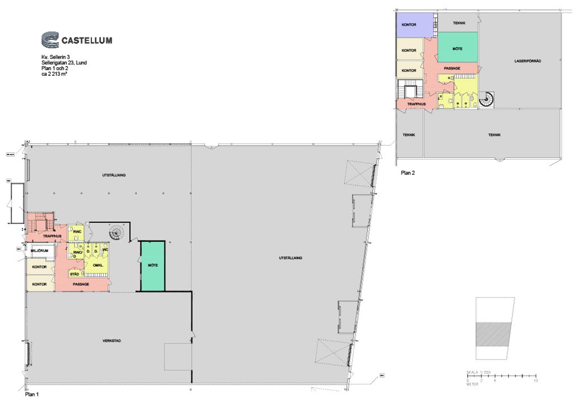 Plan 1 Består av butik-/verkstadsdel med oljeavskiljare samt omklädningsrum – en praktisk och funktionell yta för verksamhet med tekniska krav.