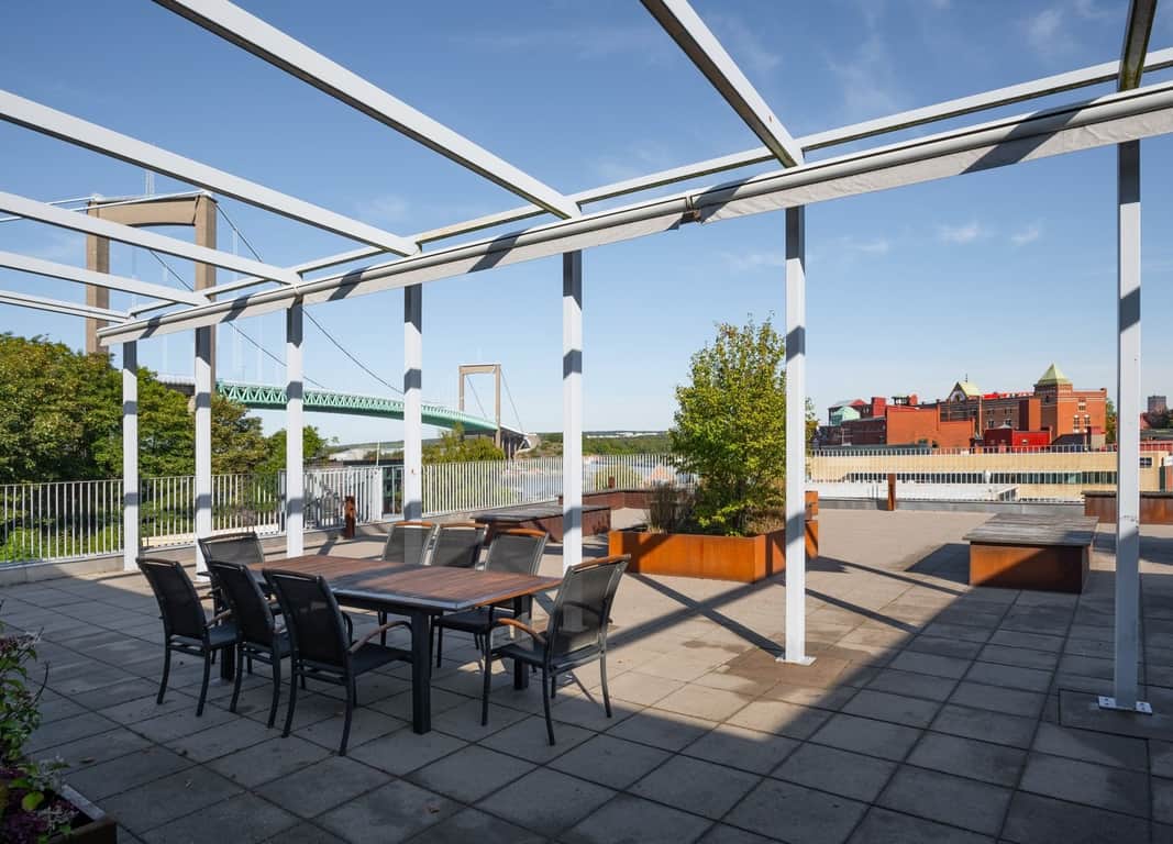 Som hyresgäster får ni tillgång till omklädningsrum med duschar, och när det är dags för en paus kan ni njuta av den härliga takterrassen med en slående utsikt över Göteborgs skyline. Parkeringsmöjligheter finns, både med P-platser och garageplatser som kan hyras vid behov.