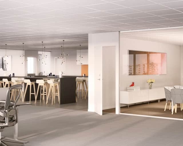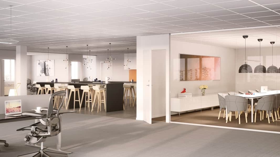 En helt nyrenoverad lokal med snygga materialval. Kontoret är utformad med en öppen yta för arbetsplatser, två samtalsrum, ett mindre mötesrum för 4 personer samt ett större mötesrum för 10 personer. Pentryt är byggt för att även kunna hålla större möten/konferens för upp till 20 personer. Lokalen är belägen på 2:a våningen med hiss eller trappor från entrén.