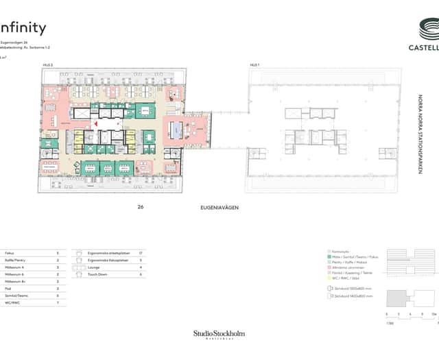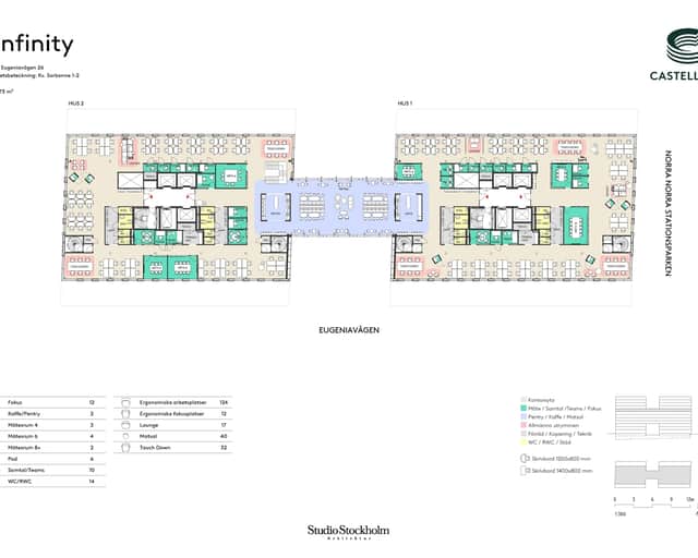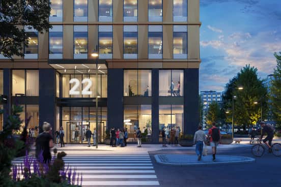 På bara en minuts gångavstånd från Hagastadens planerade tunnelbanestation erbjuder Castellum nyproducerade kontorsytor i klimatsmarta Infinty.