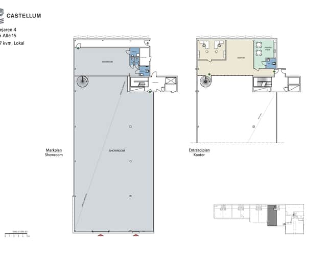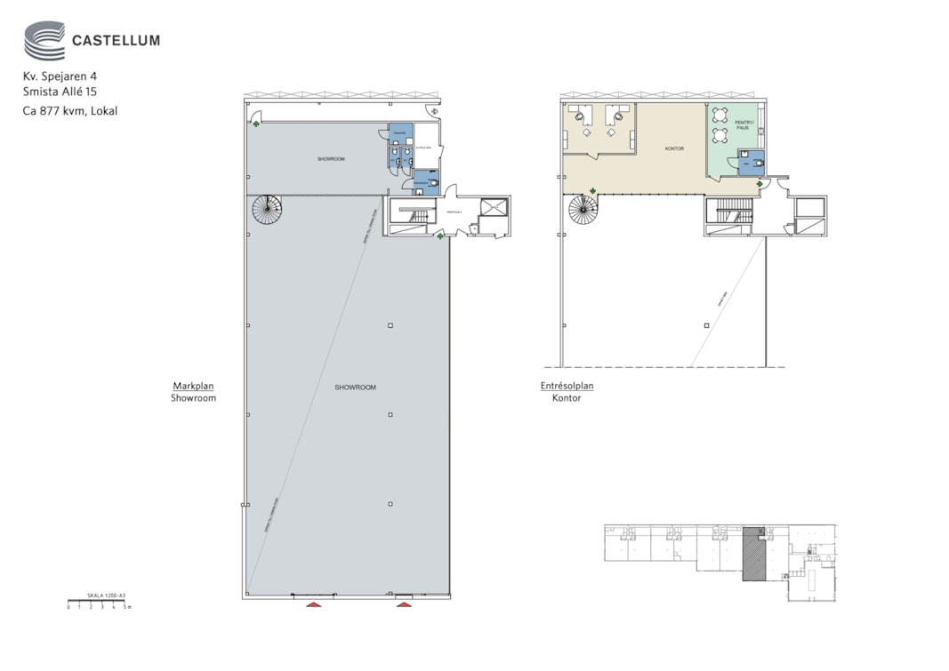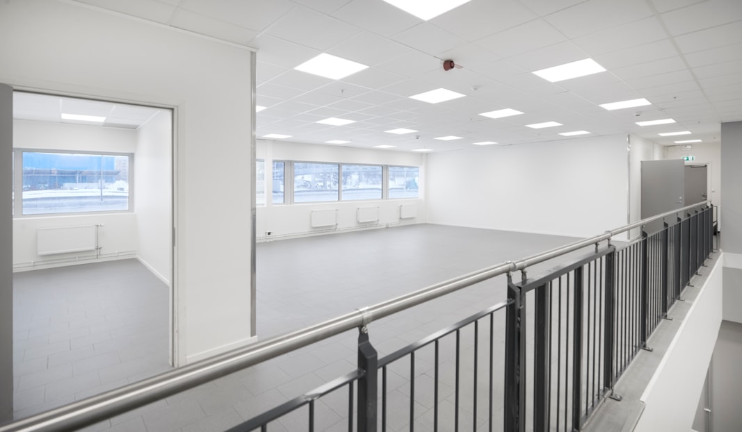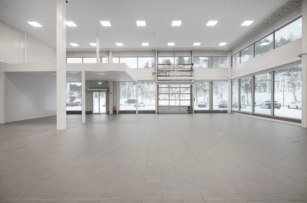 Lokalen passar perfekt som showroom och är modernt utformad med 6,6 meter fri takhöjd, stora glaspartier ut mot Smista Allé samt kontorsinredda entresolplan.