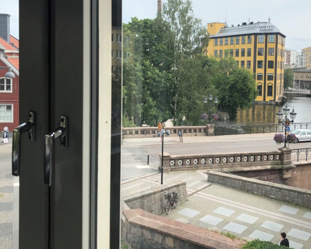 En mycket funktionell utbildningslokal mitt i det pulserade studentstråket vid Skvallertorget. Lokalen ligger en trappa upp med utsikt över Motala Ström samt Campus.