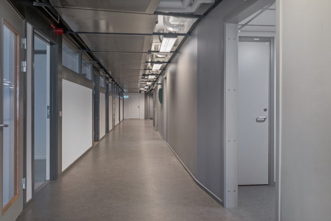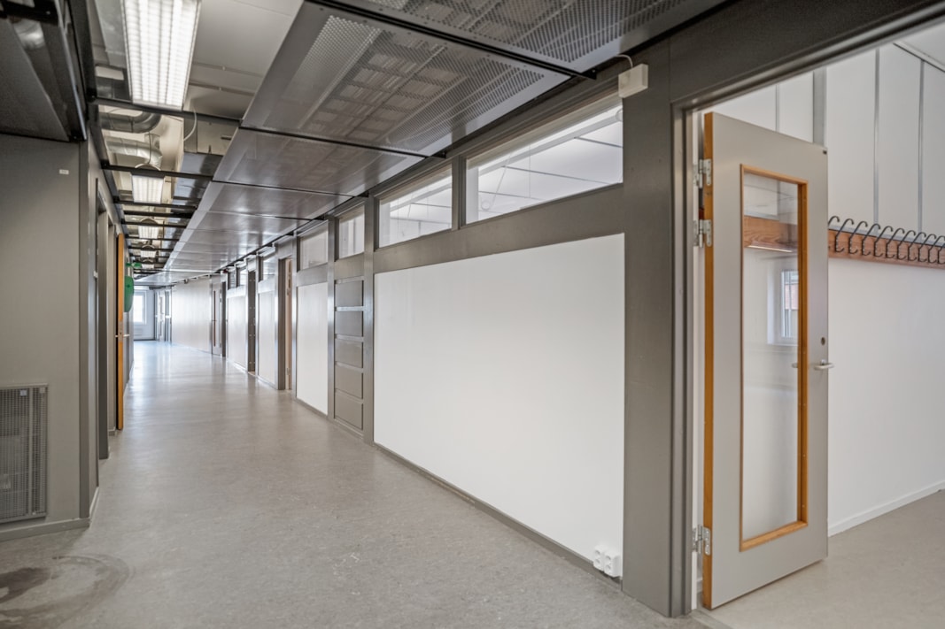 Du kommer in i en foajé som leder dig till en bred korridor där utbildningssalar och grupprum ligger på rad. På ena sidan av korridoren hittar du toaletter och på andra sidan ett fint kök. Lokalen har 331 rymliga kvm med fem undervisningsrum i fil samt ett kök i anslutning till ett av rummen. Lokalen har hela sju toaletter (varav två RWC) samt ytterligare ett pentry som möjliggör en bra uppdelning mellan "elever" och personal.