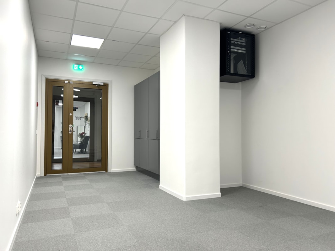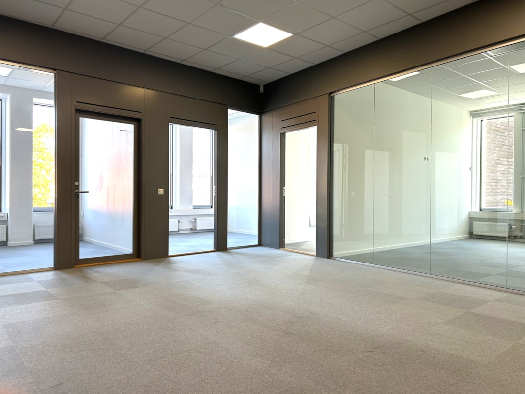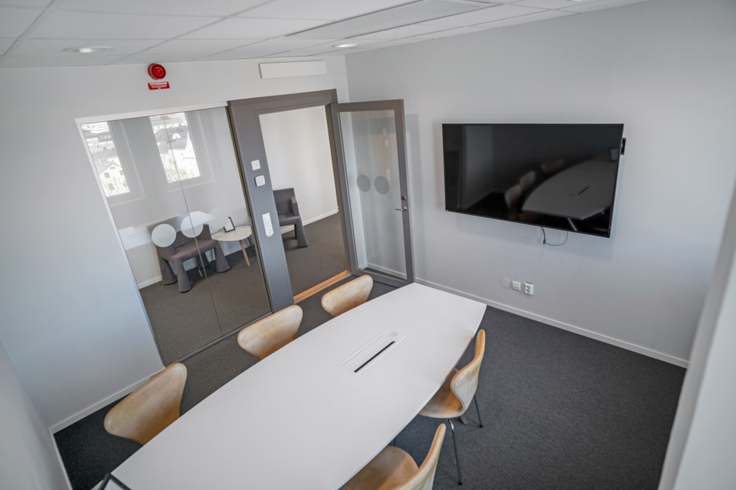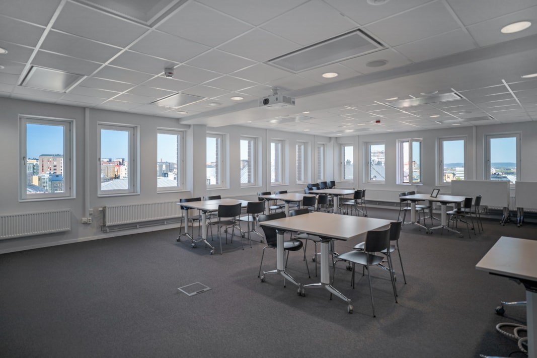 Lokalen är väl planerad där rummen är utformade med varierande antal arbetsplatser, vilket ger en naturlig balans mellan gemenskap och fokus. De öppna och ljusa ytorna med textilmattor och spatsiös takhöjd, skapar en kreativ atmosfär där team kan arbeta nära varandra, medan de avskilda rummen ger möjlighet till lugn och diskretion när det behövs. Dessutom finns en hel våning med varierande storlek av konferensrum som fastighetens hyresgäster har tillgång till.