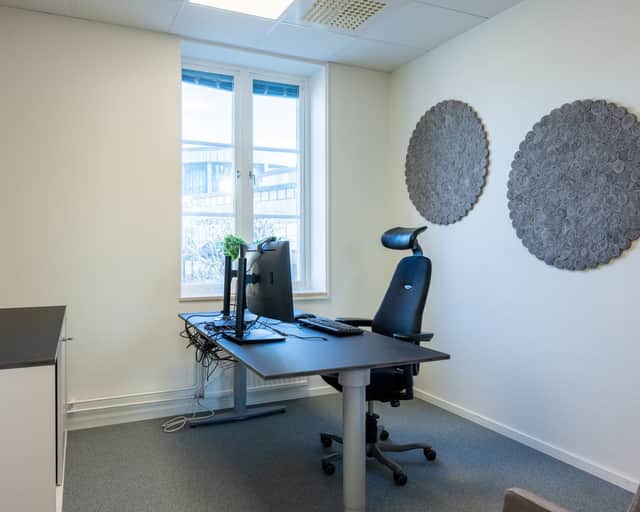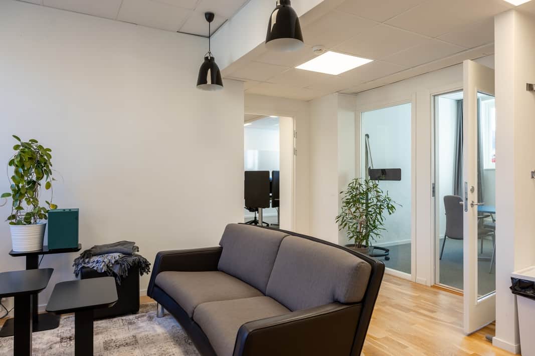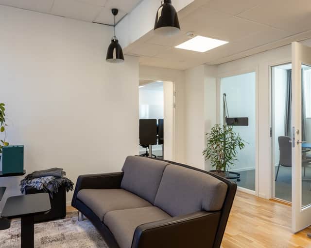 I entrén möts ni av en ljus och välkomnande yta som fungerar perfekt som en reception eller lounge. Härifrån tar ni er vidare till öppna kontorsrum samt kontorsytor som kan delas av eller anpassas för olika arbetsgrupper. Det finns trevliga mötesrum som skapar goda förutsättningar för möten. Lokalen erbjuder ett bra flöde mellan arbetsstationer och gemensamma ytor, vilket gör det lätt att skapa en dynamisk och inspirerande arbetsmiljö. Med stora fönster får ni ett fantastiskt ljusinsläpp, vilket ger en luftig känsla och en trivsam atmosfär.