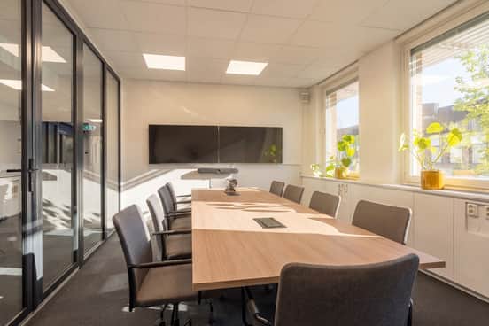 De generösa fönstersättningarna ger ett fantastiskt ljusinsläpp i hela byggnaden. Här kombineras funktionella lokaler med ett lugnt, naturnära läge, samtidigt som city och goda kommunikationer finns inom räckhåll.