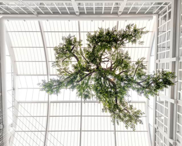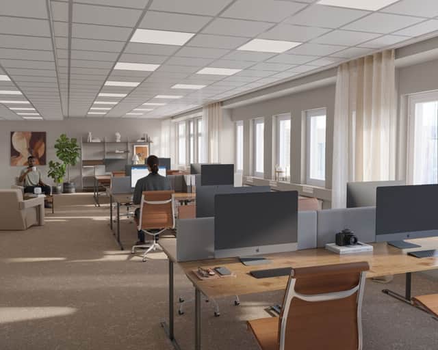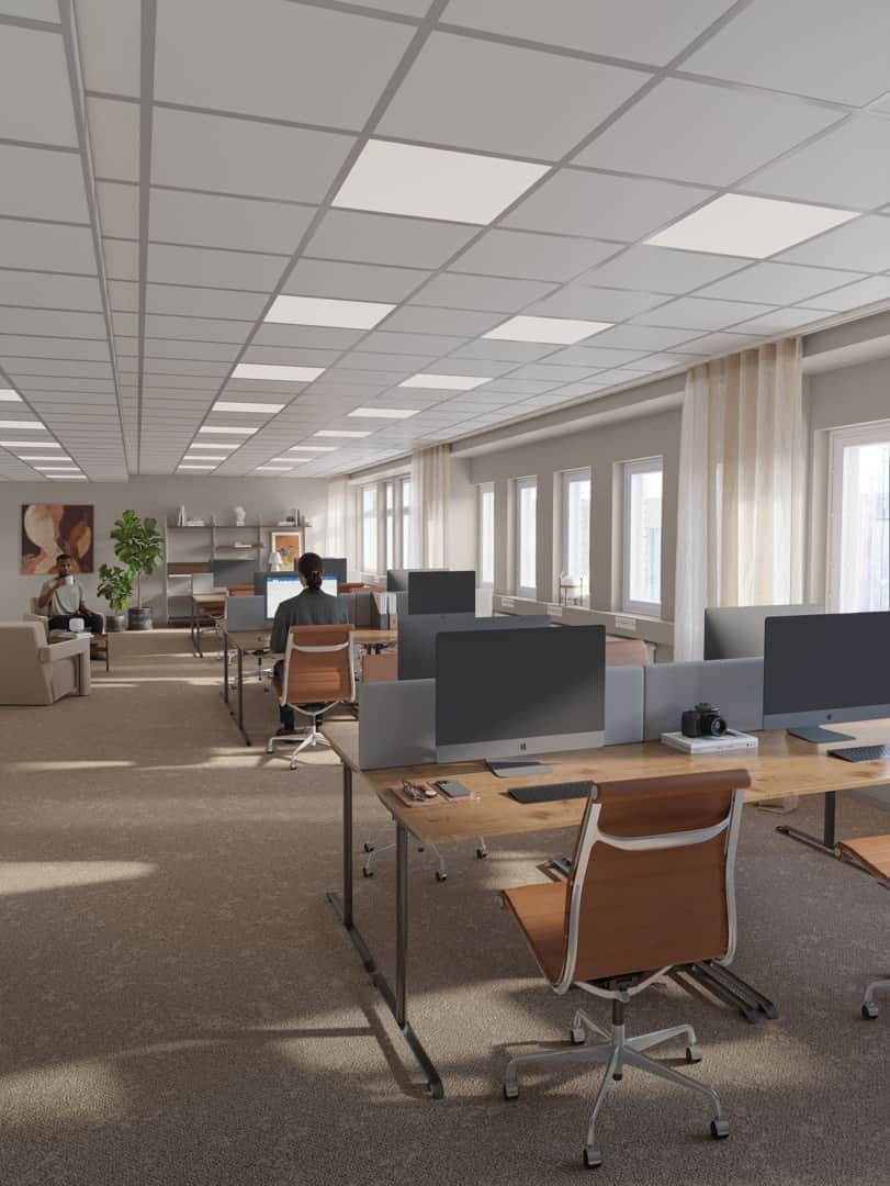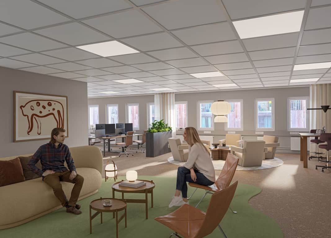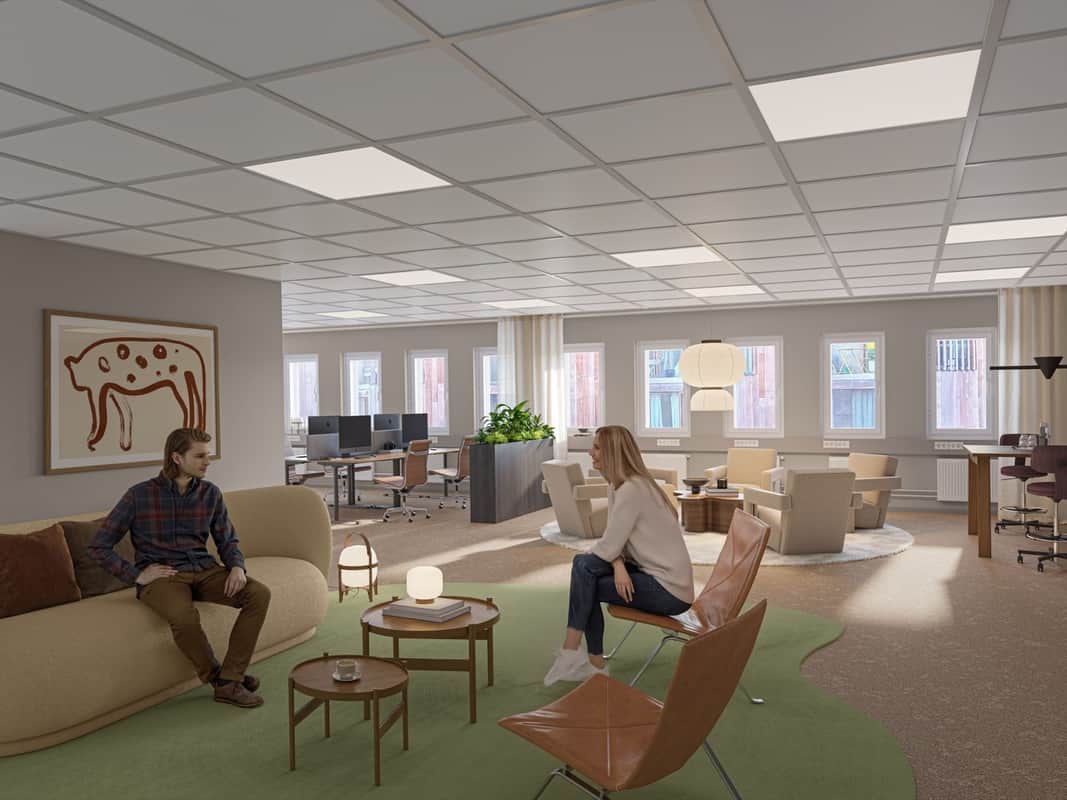 De generösa fönstersättningarna ger ett fantastiskt ljusinsläpp i hela byggnaden. Här kombineras funktionella lokaler med ett lugnt, naturnära läge, samtidigt som city och goda kommunikationer finns inom räckhåll.