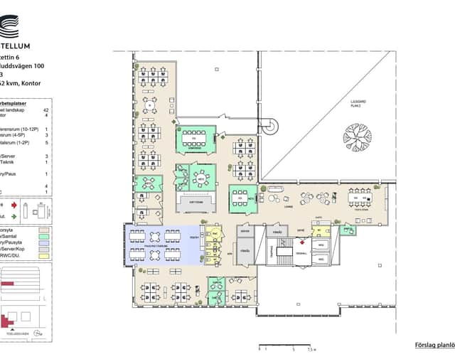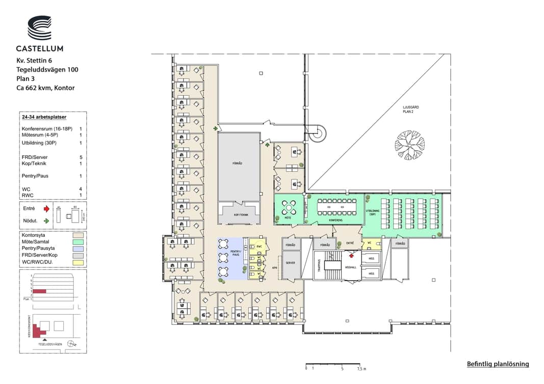 Lokalens planlösning idag består av enskilda kontorsrum, mötesrum i olika storlekar, personalytor, utbildningssal och förrådsytor. Lokalens layout går enkelt anpassa efter era behov.