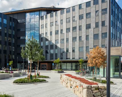 Som ett av Nordens mest hållbara fastighetsbolag hållbarhetscertifierar vi alla våra ny- och ombyggnationer. Vi erbjuder energieffektiva fastigheter med en trygg och hälsosam arbetsmiljö. Gröna avtal är standard, och energianvändningen i våra fastigheter är 50 procent under branschsnittet.