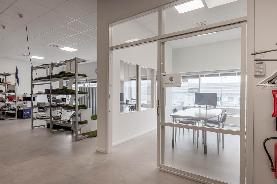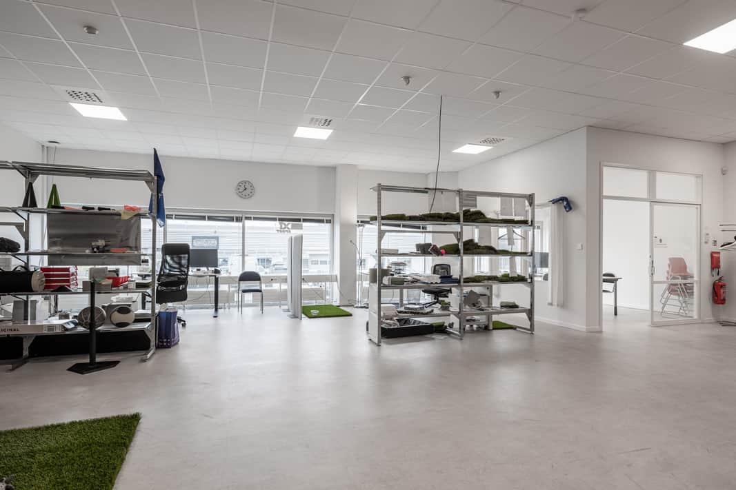 Stora fönster ger ett härligt ljusinsläpp. Utöver den öppna ytan finns ett konferensrum, toalett med dusch samt ett lager om cirka 60 kvm. Lagret ligger i markplan och nås via lastgång, smidigt för in- och utleveranser.