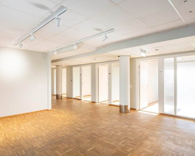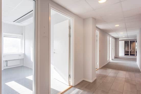 Lokalen är ljus och trivsam, med fina fönsterpartier längs hela fasaden och ett luftigt ljusgårdsparti som skapar en inspirerande arbetsmiljö.