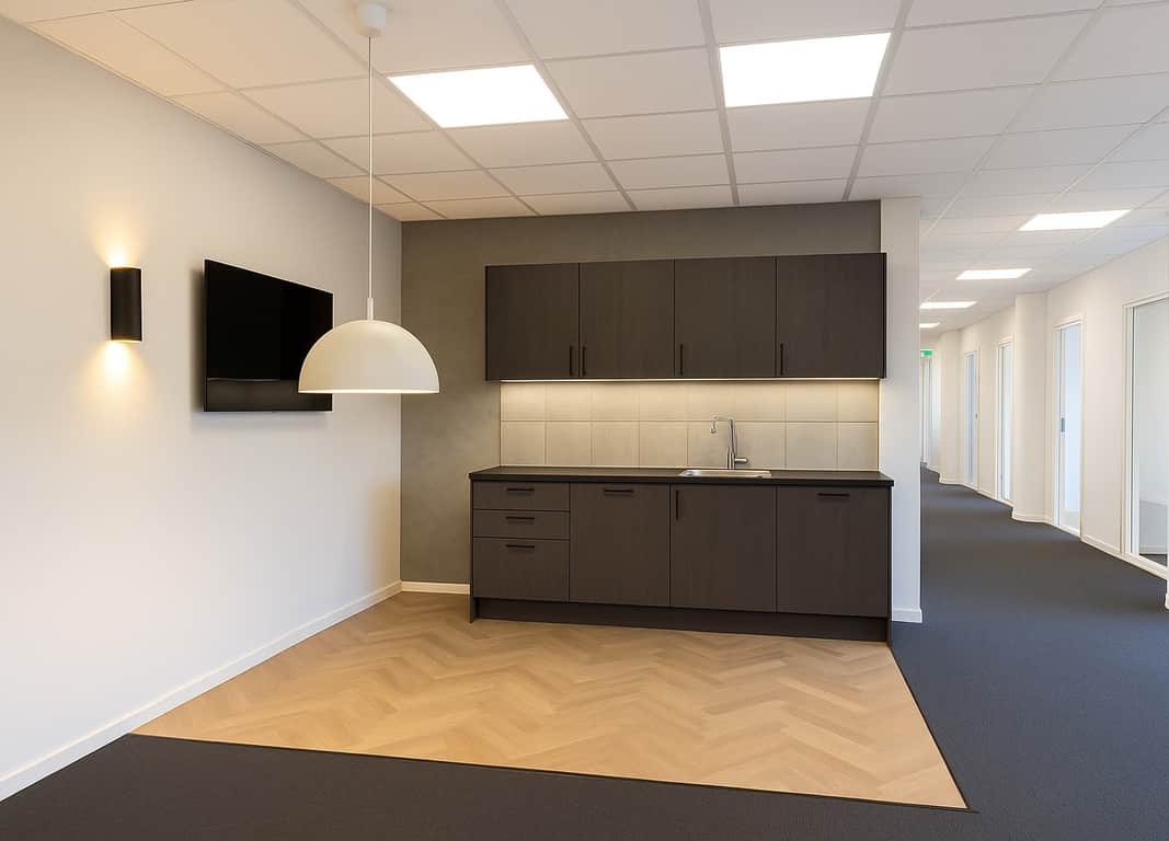 Planlösningen är flexibel och kan anpassas – exempelvis för fler eller färre kontorsrum, alternativt ett mer öppet kontorslandskap.