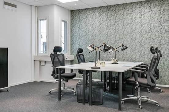 Öppet landskap kombinerat med kontors- och mötesrum.