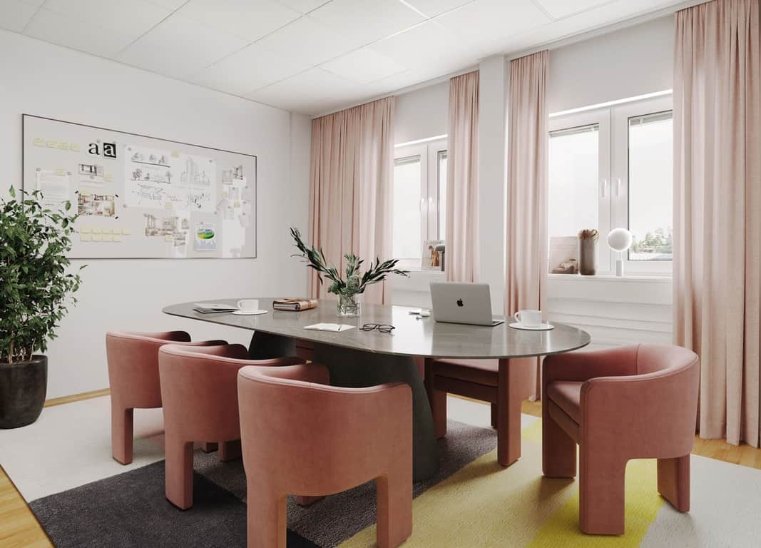 Från plan fyra kan man ta interntrappan upp till plan fem som betår av 25 rumsindelade kontor och flera mötesrum. Här finns också generösa ytor för pentry och paus, vilket skapar en perfekt balans mellan arbete och återhämtning.