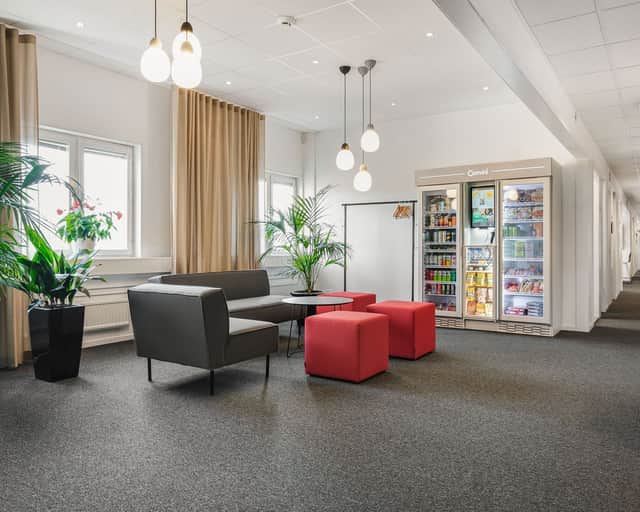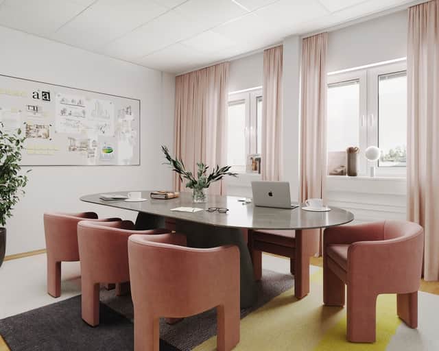 På första planet (plan 3) finner du en yta om 455 kvm, utrustad med en välkomnande reception och lounge, fyra öppna arbetsplatser, 14 kontorsrum och två mötesrum.