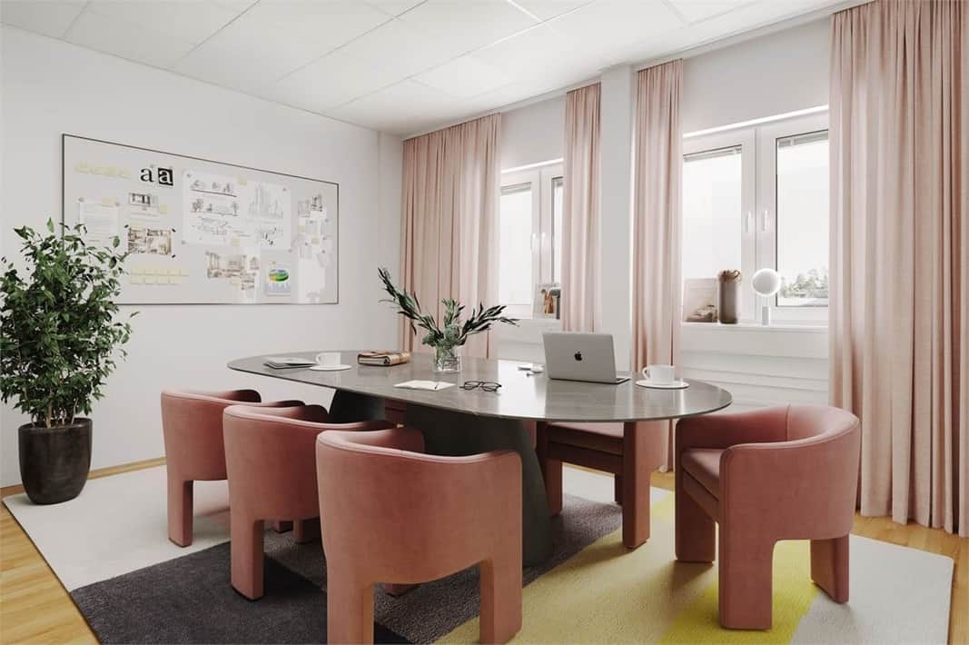 Från plan fyra kan man ta interntrappan upp till plan fem som betår av 25 rumsindelade kontor och flera mötesrum. Här finns också generösa ytor för pentry och paus, vilket skapar en perfekt balans mellan arbete och återhämtning.