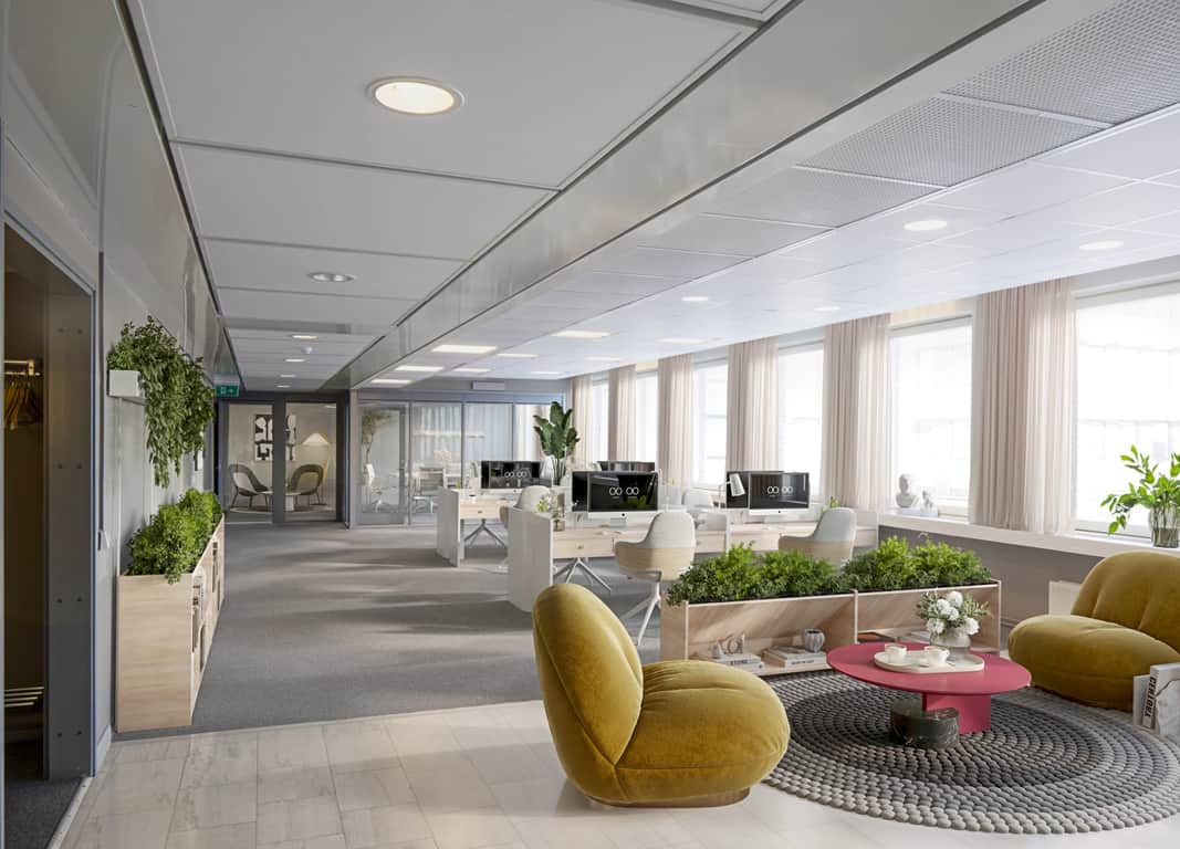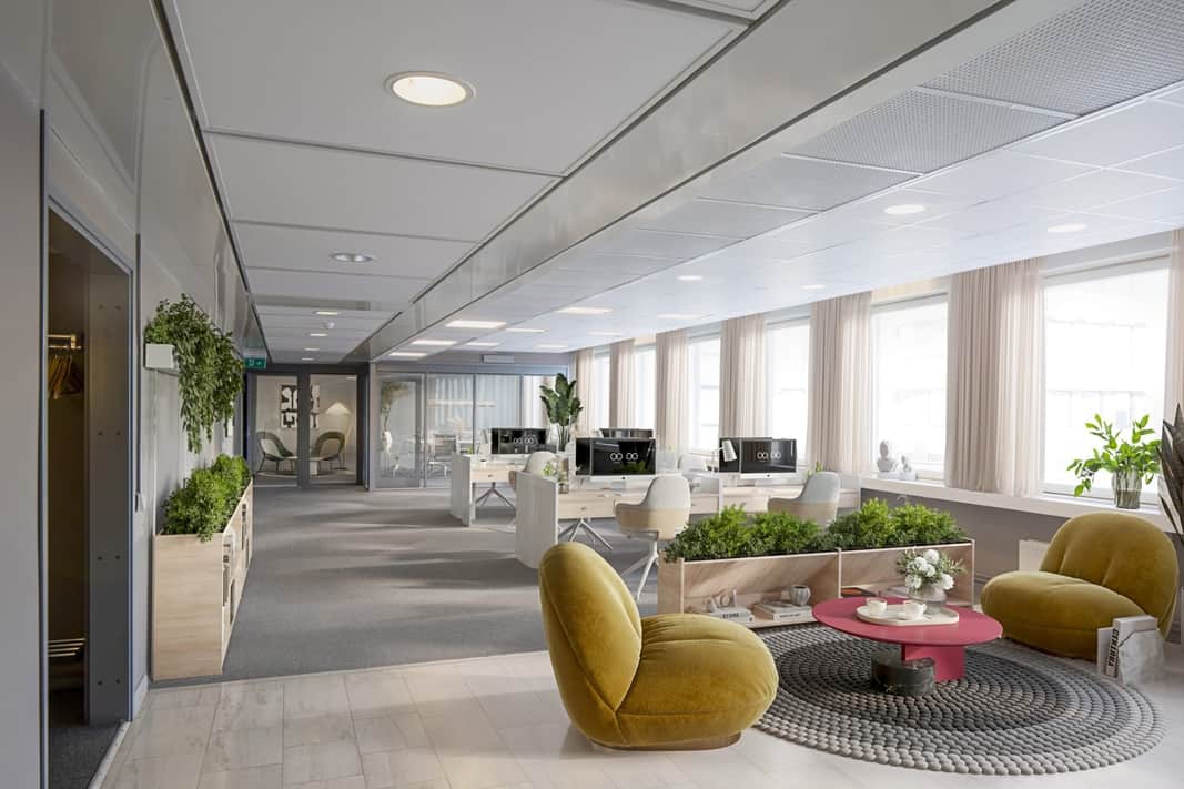 Här får ni som hyresgäst ett fint kontor med arbetsplatser i befintligt skick upp mot 25 personer.