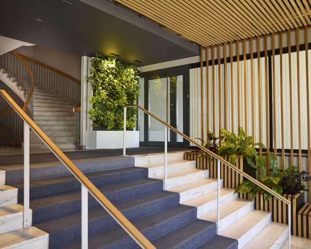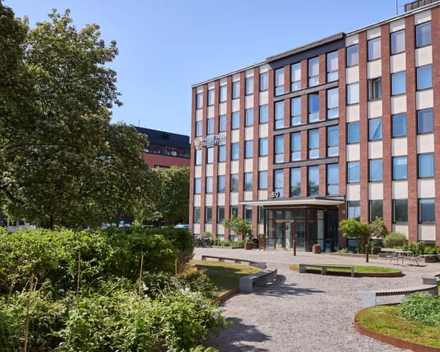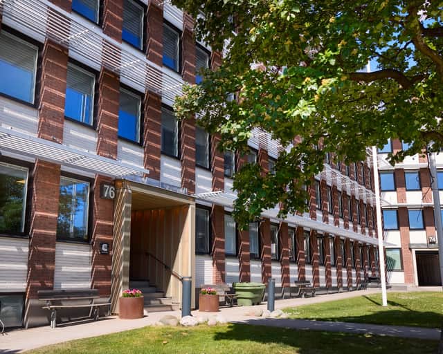 Fastigheten är strategiskt belägen med närhet till både city och natur, vilket gör den till ett perfekt val för företag som värdesätter tillgänglighet. Precis utanför entrén breder ett charmigt, grönskande torg ut sig – en naturlig mötesplats med gemensamma sittbänkar i soligt läge. Här kan du ta en kaffe i solen, hålla informella möten utomhus eller bara njuta av en stunds avkoppling mellan arbetsuppgifterna. Det här är mer än bara en kontorsadress – det är en plats där människor trivs, nätverk växer och idéer får utrymme att blomstra.