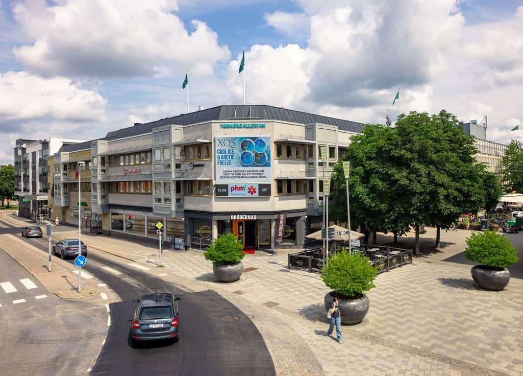 Det blir inte mer centralt än detta. Fastigheten ligger i Växjös stadscentrum och har utöver den egna gallerian mängder av butiker, restauranger, caféer och kultur runt knuten. En kort promenad bort ligger vackra Linnéparken som är en del av Växjö stadspark, ett fem kilometer långt promenadstråk runt Växjösjön.