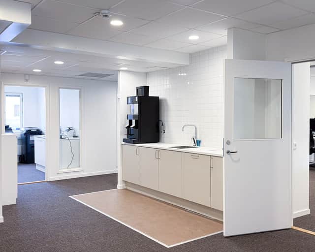 I denna toppfräscha lokal som totalrenoverades 2023 finns varierande arbetsmiljö med både egna rum, öppet landskap, teknikrum, lager och godsmottagning. Lokalen har ljusa fina ytskickt och ett härligt ljusinsläpp från båda håll. Stora konferensrummet och chefsrum har hög ljudklassning och är sekretessanpassade.