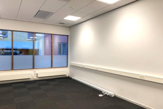 En ljus och öppen lokal med flexibla samarbetsytor på Teknikringen 1D. Lokalen tillträdes genom den lummiga innergården och på plan 2 finner man denna renoverade lokal från 2019.