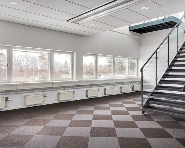 Här får ni som hyresgäst en ljus och fin lokal med stort ljusinsläpp från två väderstreck, vilket ger en ljus och trevlig arbetsmiljö.