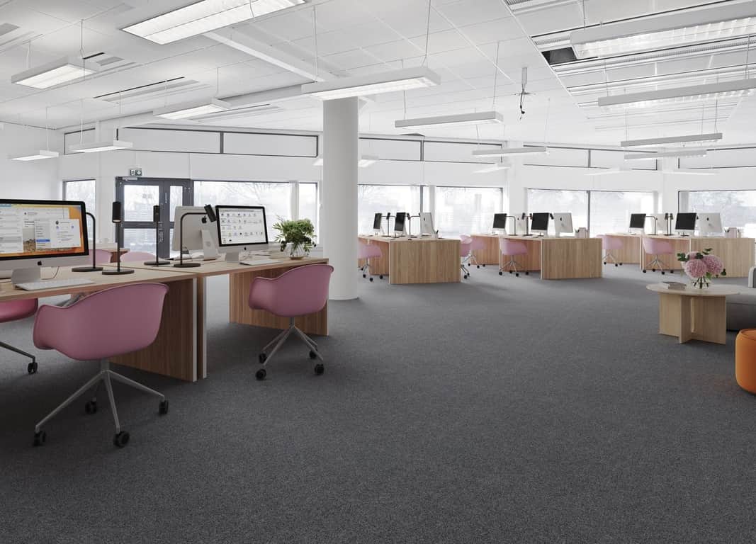 De stora fönsterna i lokalen ger ett härligt ljusinsläpp.