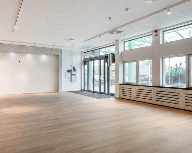 Denna fräscha och ljusa lokal erbjuder generösa ytor, perfekt för showroom. Genom de stora skjutdörrarna kliver du direkt in i en öppen och ljus lokal, perfekt anpassad för att visa upp dina produkter på bästa sätt.