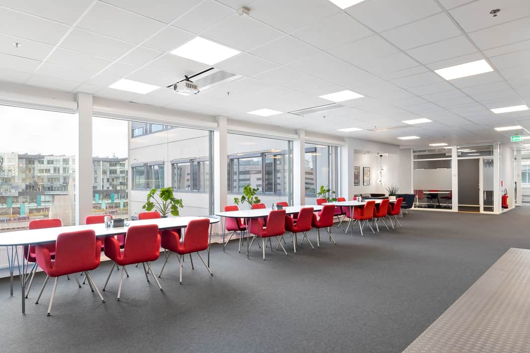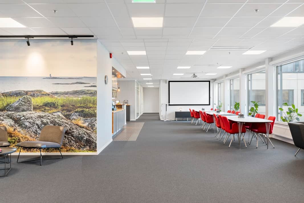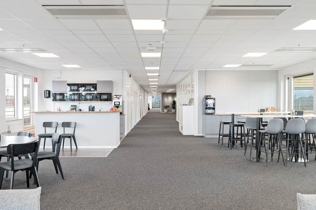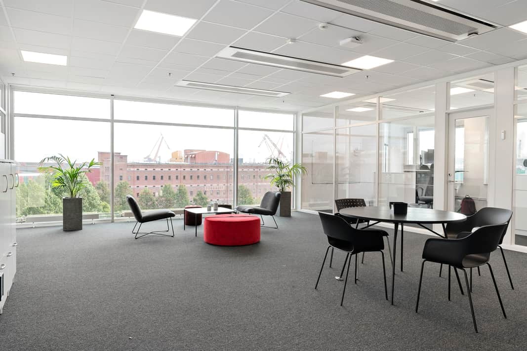 Moderna ljusa kontor på plan 4-6 med utsikt mot vattnet. Möjligt att hyra från 258 kvm upp till 2185 kvm. Ytorna går att anpassa och förändra för att motsvara ert företags önskemål och behov. Härligt ljusinsläpp från alla fyra väderstrecken ger en kreativ och inspirerande arbetsmiljön för medarbetarna.