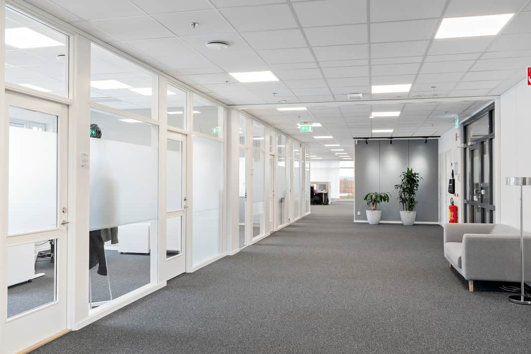 I dagsläget blandad planlösning med enskilda kontorsrum, större öppna ytor och gemensamhetsytor.