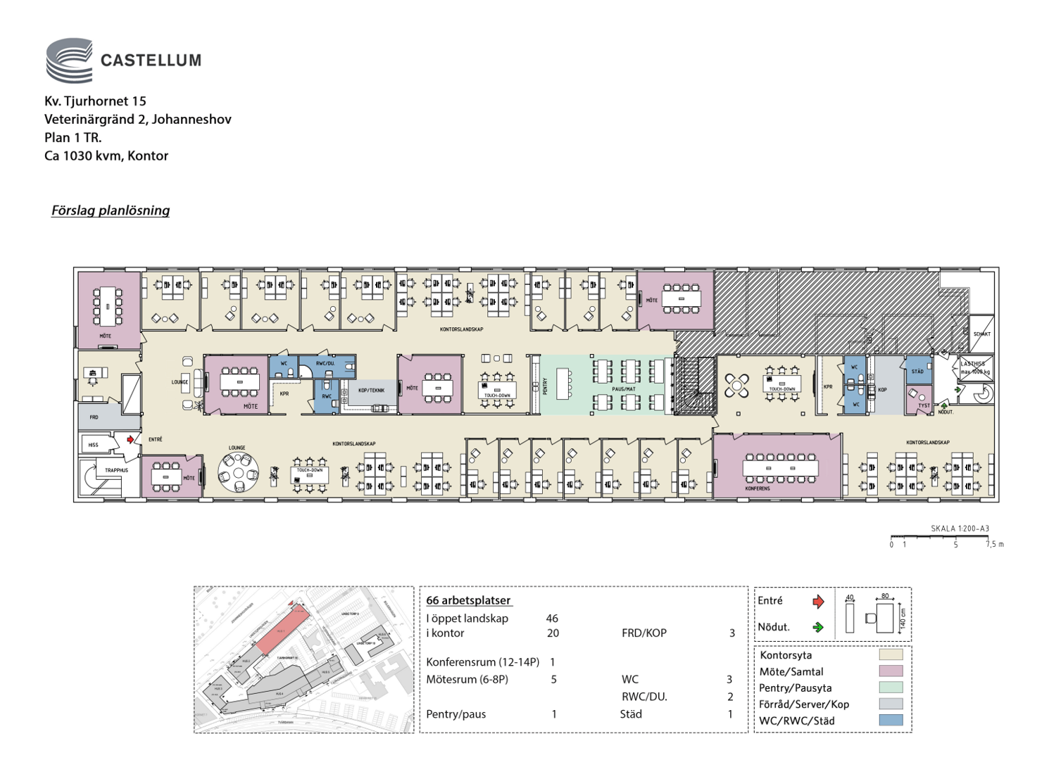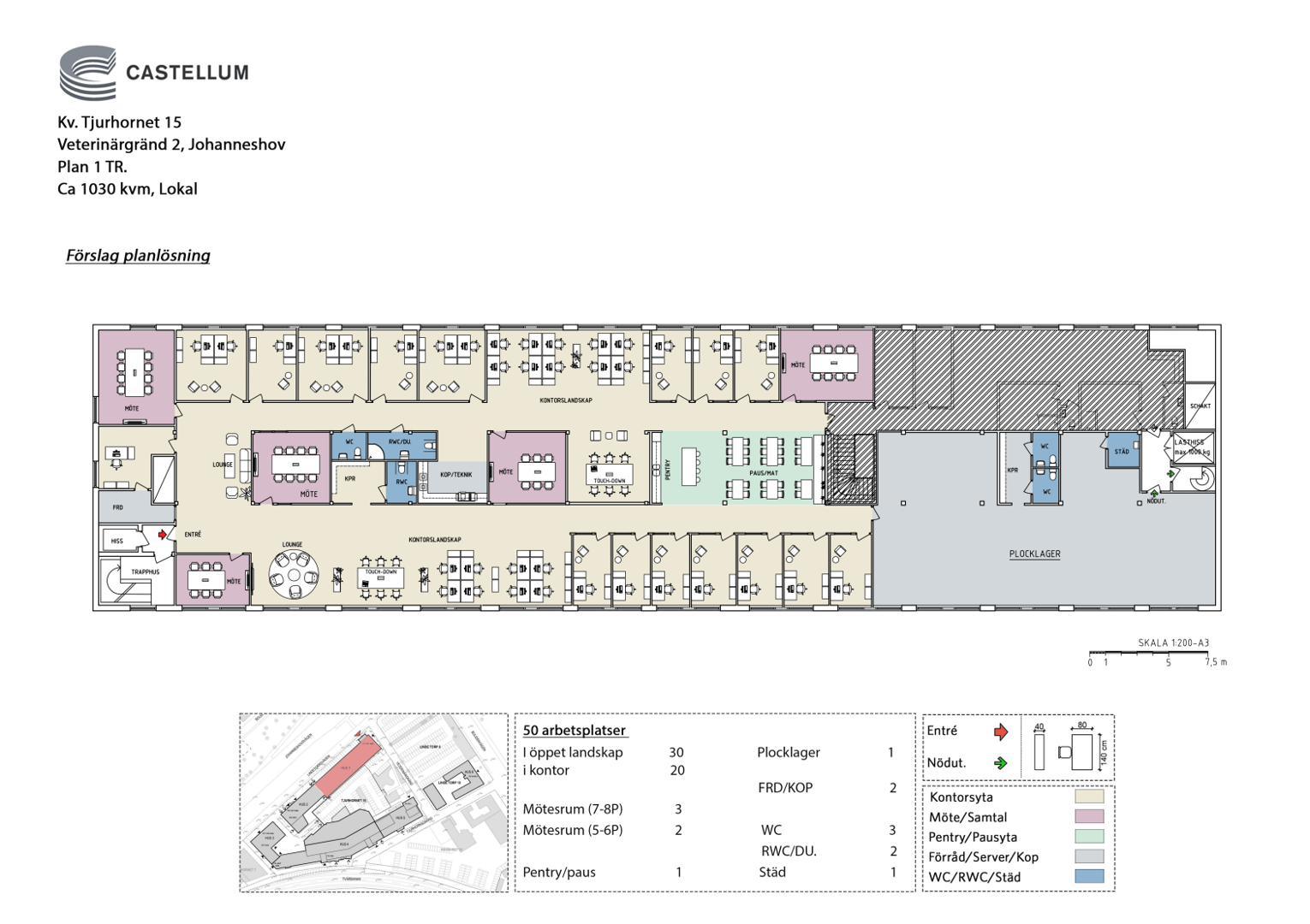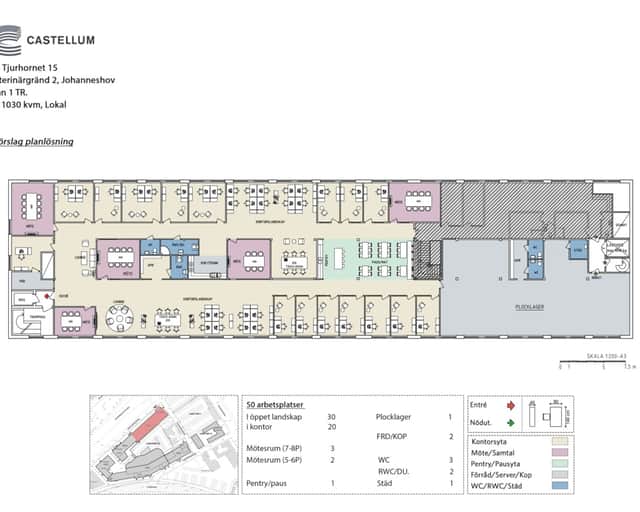 Planlösningen består av blandade ytor, både öppna landskap, rumsindelade kontor och ett flertal mötesrum. Möjlighet att skapa en lageryta i lokalens inre del. Access till lasthiss finns.