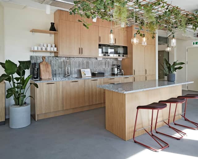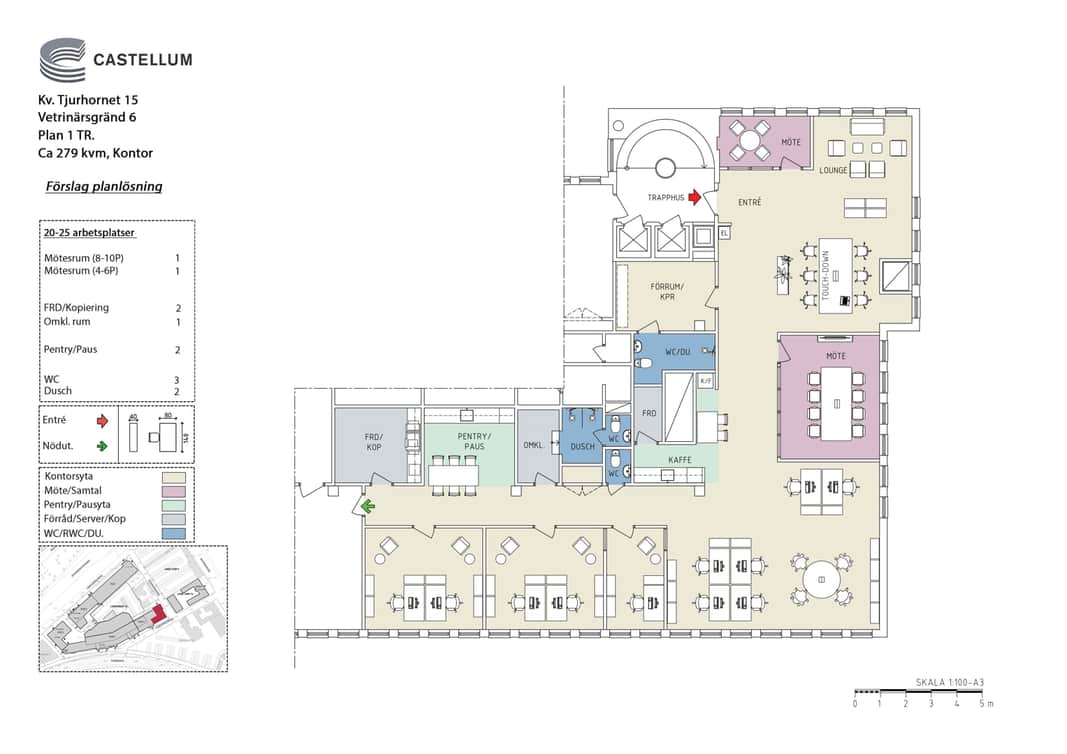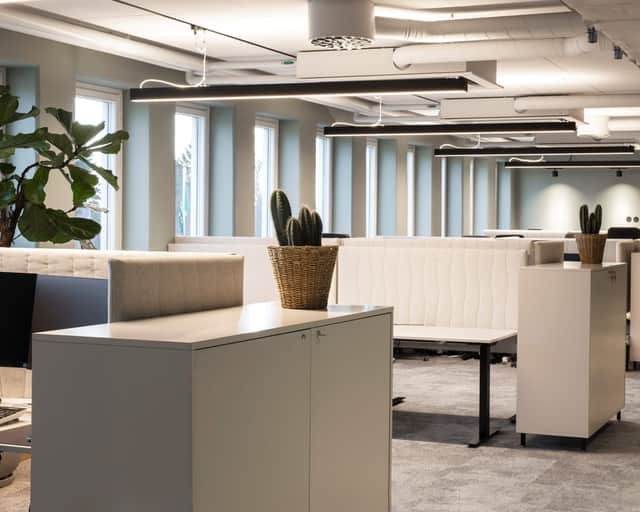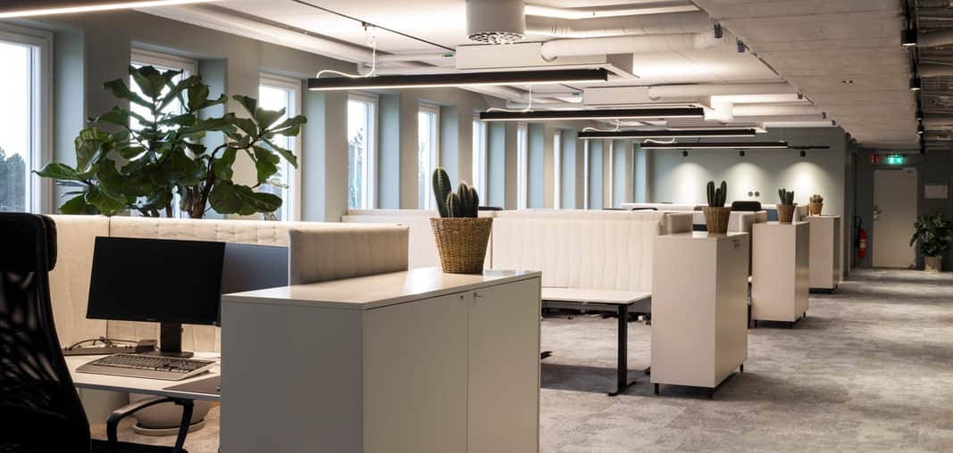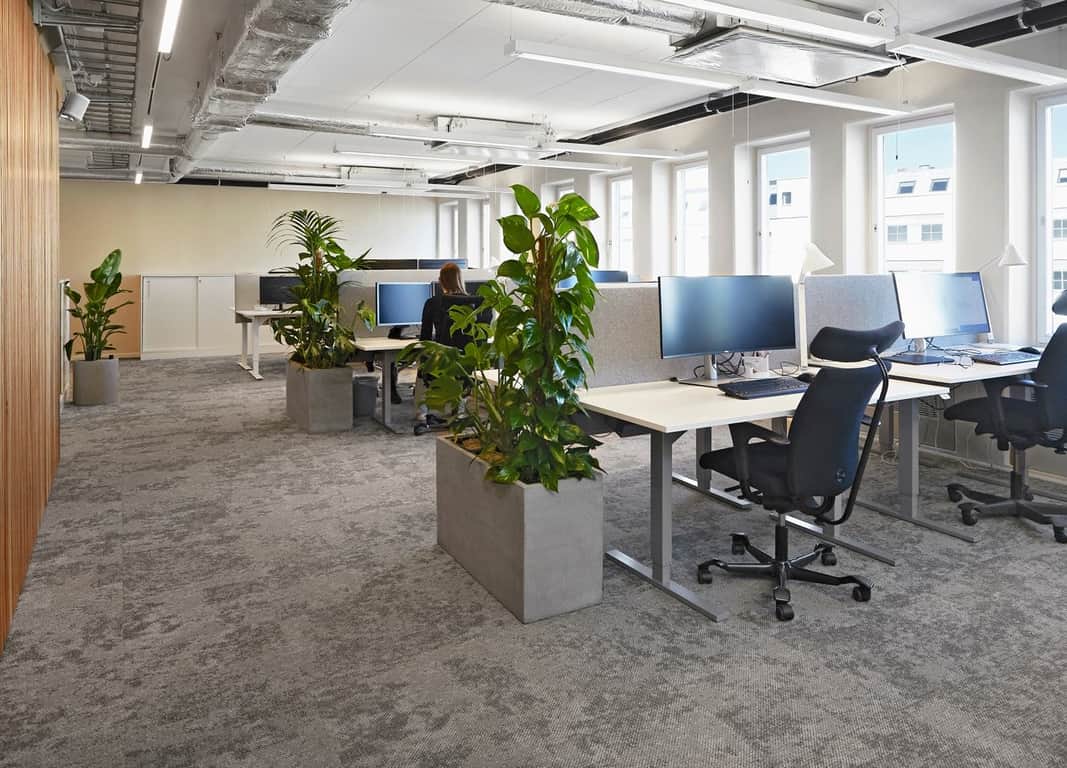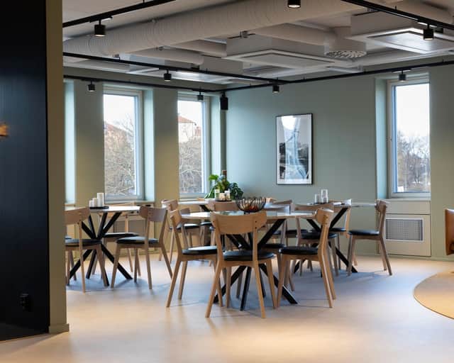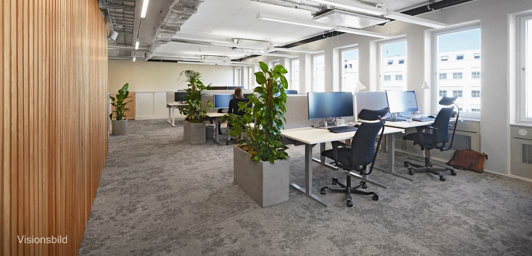 Lokalen erbjuder flexibla ytor som enkelt kan anpassas efter era behov, oavsett om ni föredrar öppna landskap eller en mix av arbetsrum och gemensamma utrymmen.