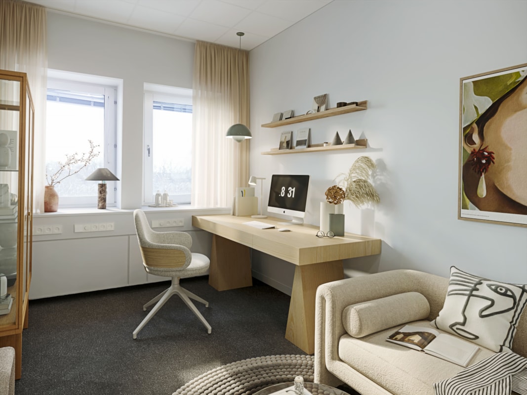 Lokalen har ett fint ljusinsläpp och skapar tillsammans med de ljusa ytskikten i en trevlig arbetsmiljö.