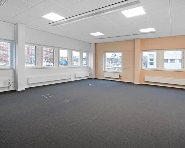 Här får ni som hyresgäst en lokal i fastighetens entréplan med härlig rymd och rikligt med ljusinsläpp.