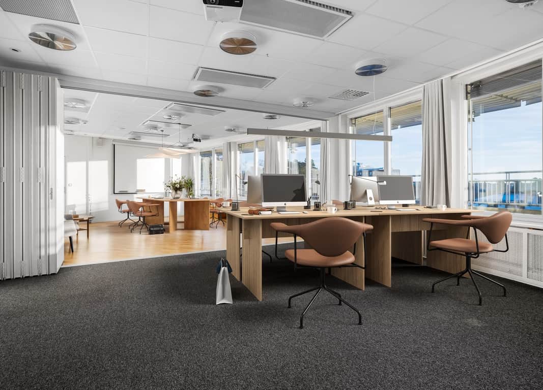 Lokalen om 335 kvm är extremt effektiv med två entréer och med fastighetens täta fönstersättning skapas ett ljus och en rymd utöver det vanliga.