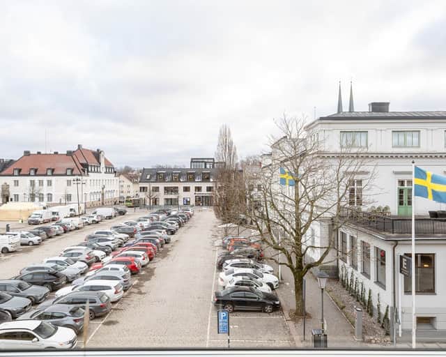 Stor allmän parkering rakt över gatan på Stortorget.